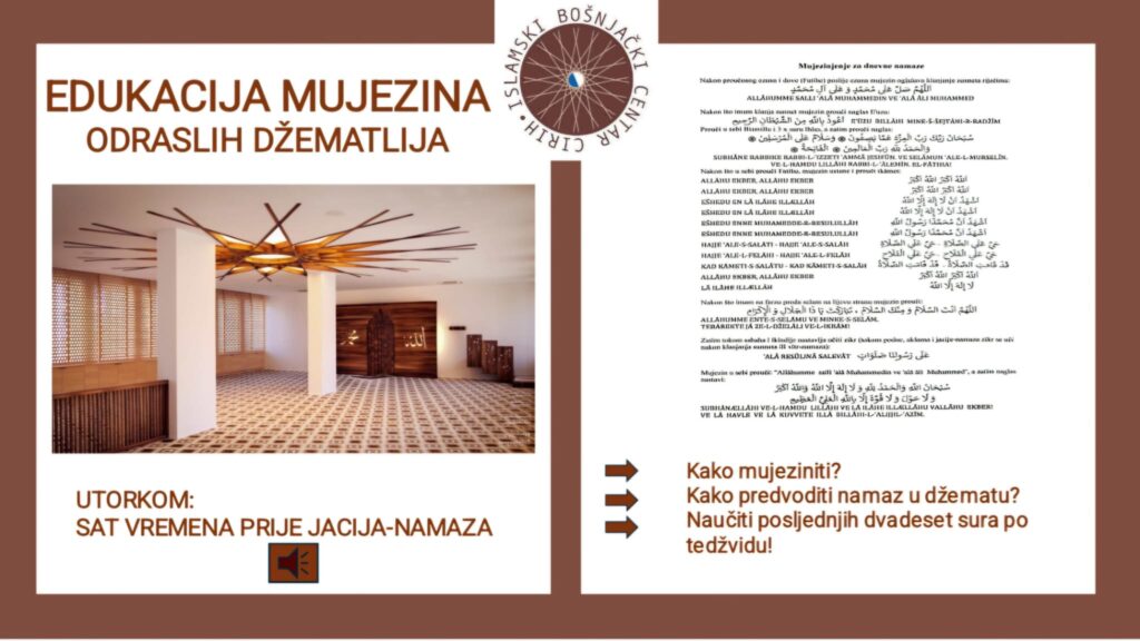Esselamu alejkum poštovane džematlije i džematlijke. LEJLETU-L-MIRADŽ ćemo obilježiti, ako Bog da, 17. januara od akšama do jacije (iako je ova mubarek noć po takvimu dvije noći prije) a nakon jacije je džematska večera. Za večeru treba prijava na ovaj broj sa koga dobijate obavještenja. Dobro nam došli.